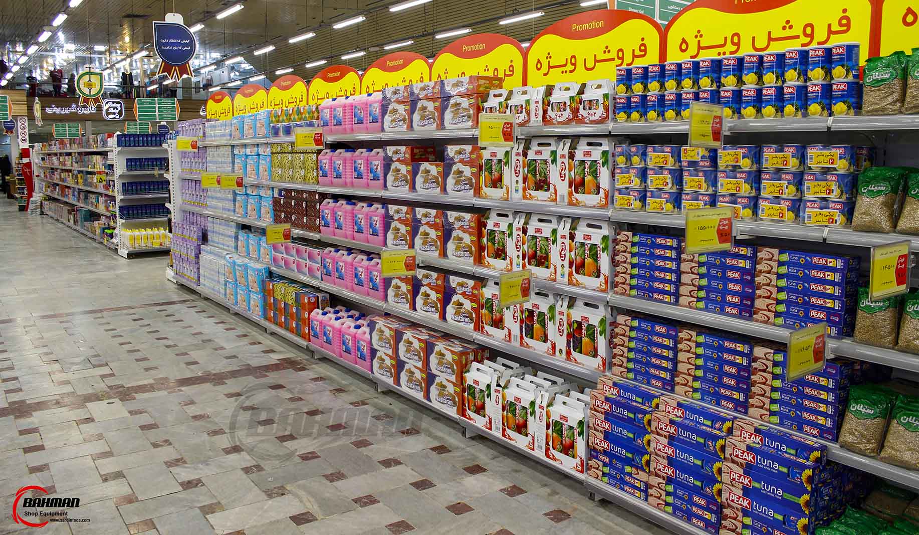 فروشگاه رفاه شعبه مخابرات مشهد شامل دپارتمان های : مواد خوراکی و مصرفی ، آرایشی و بهداشتی ، لوازم غذایی تازه ، دپارتمان لوازم خانگی ، لوازم برقی و دیجیتال ، میوه و سبزیجات و سلولوزی است محصولات استفاده شده در این پروژه شامل : قفسه یکطرفه دیواری به طول 97 و عرض 50سانتمتر به همراه لیبل قیمت و نرده محافظ جلو ، رگال و هوک ، قفسه ستون دوبل در عرض 70 سانتیمتر به منظور نمایش محصولات سنگین مانند برنج و روغن ، میزصندوق دوبل یو ، استند جلو کانتر طرح ایتالیایی و کالسکه خرید فروشگاهی ،